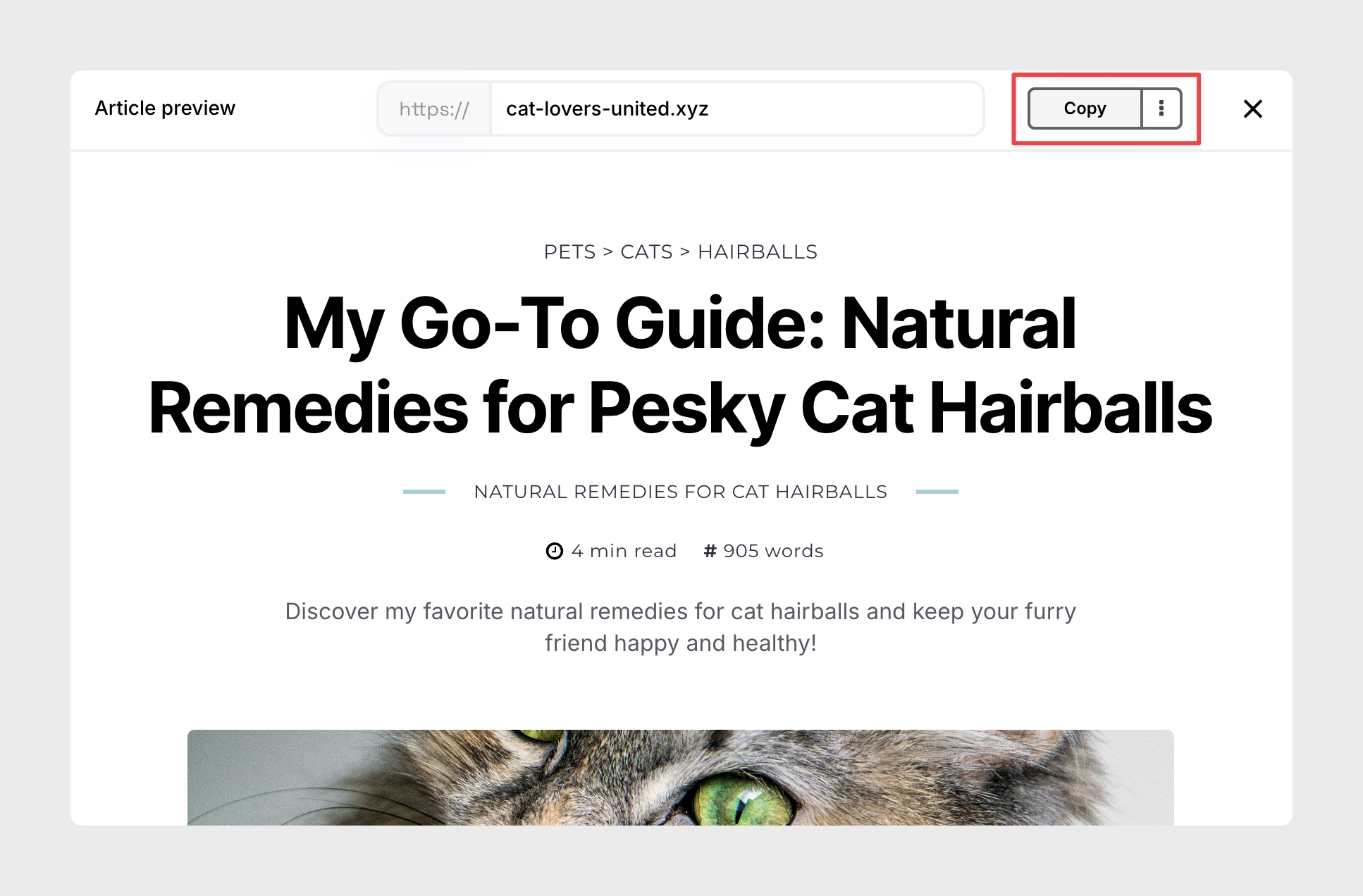 After you've provided a base url, the Copy button will become available - click it and the rich text content will be copied to your clipboard.