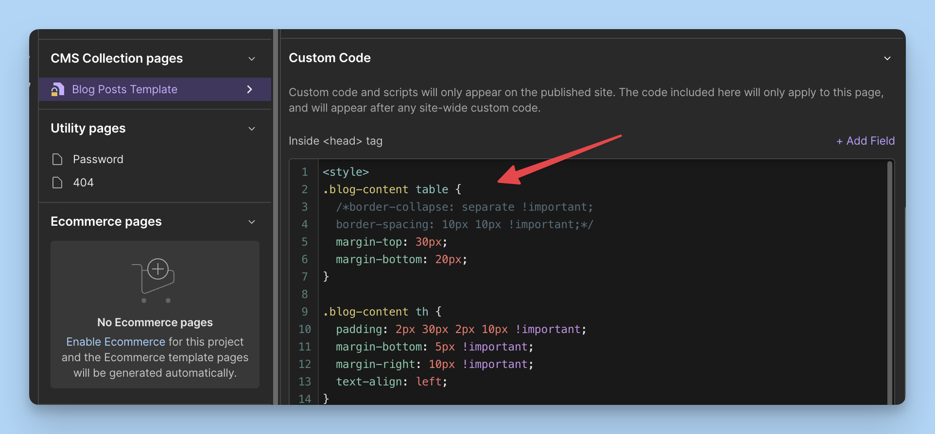 Note: Even after styling the table this way, it will still look broken in both the Webflow Designer and Preview - however it will be correctly styled in the published version.