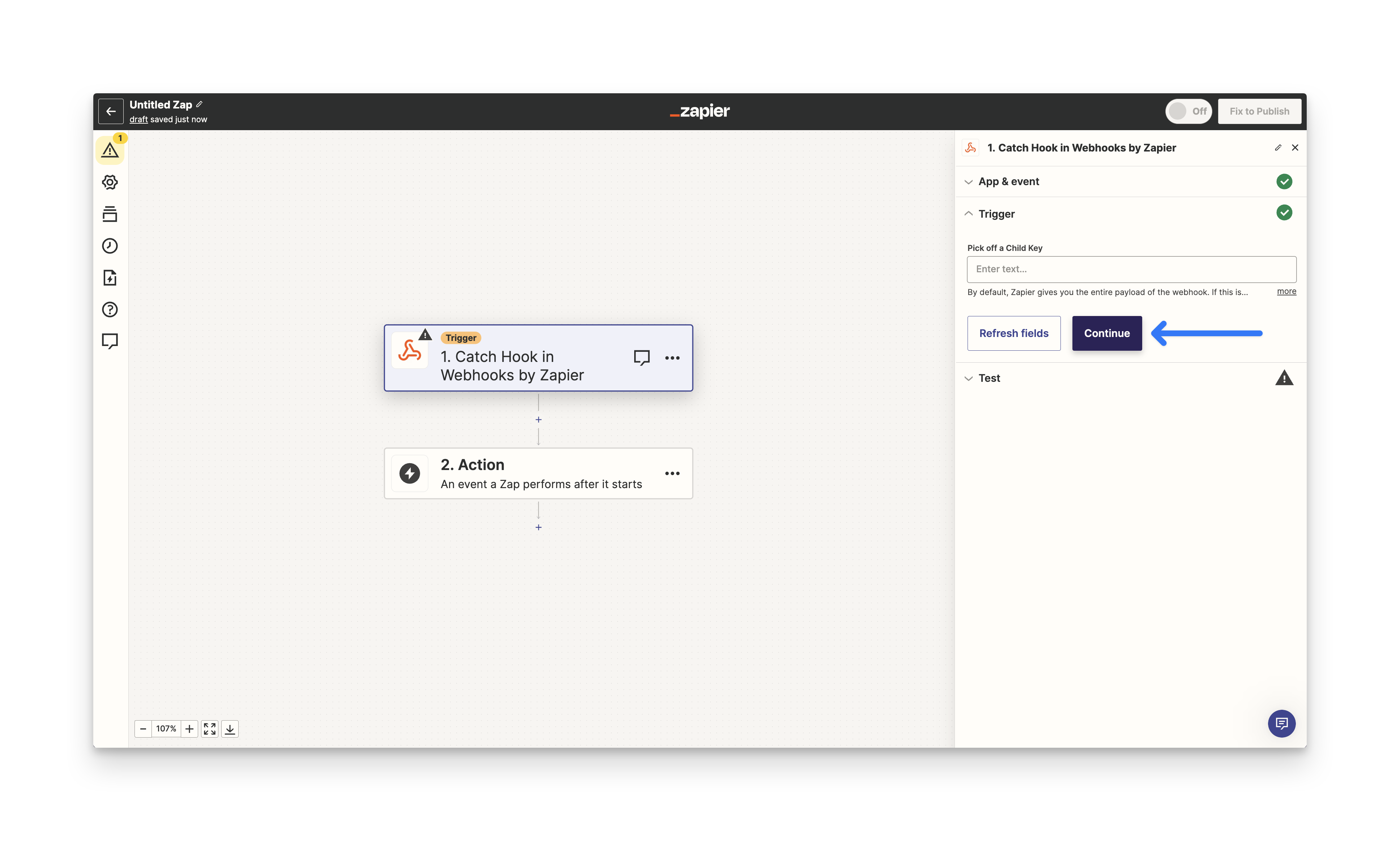 - Pick off a Child Key is optional, leave it blank and click Continue.